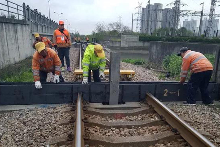 上海工务段组织职工在何杨线进行防洪试闸(盛建勋 摄)